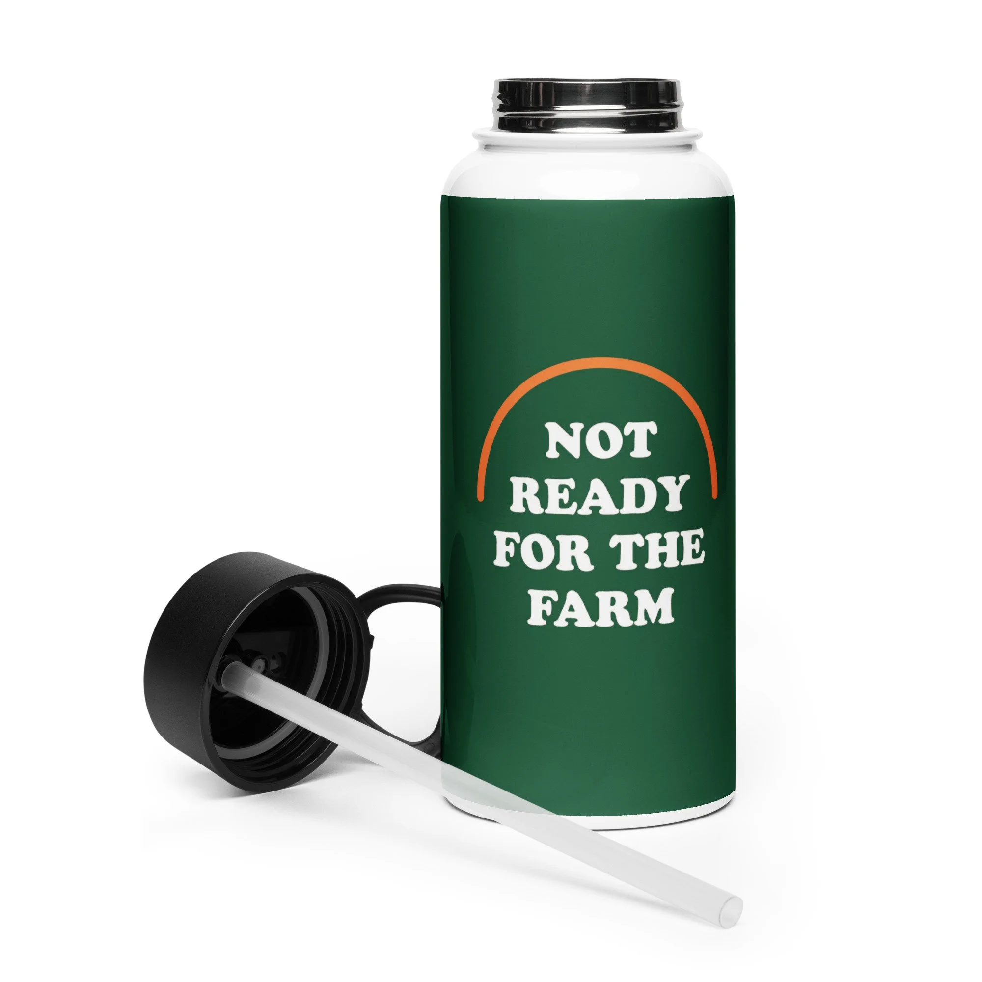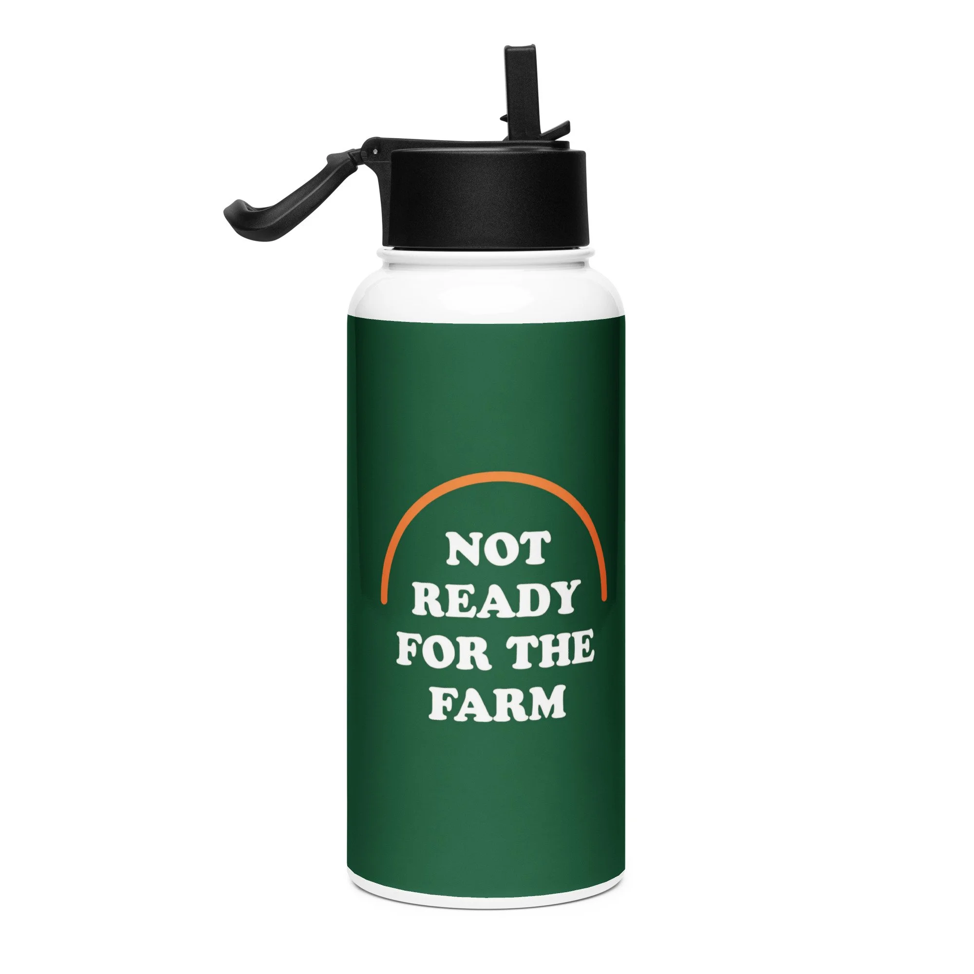 Our 32-oz Not Ready for the Farm water bottle is made for people who know that staying upright and staying hydrated are both worth the effort! Durable, easy to carry, and designed for spill-free sipping,